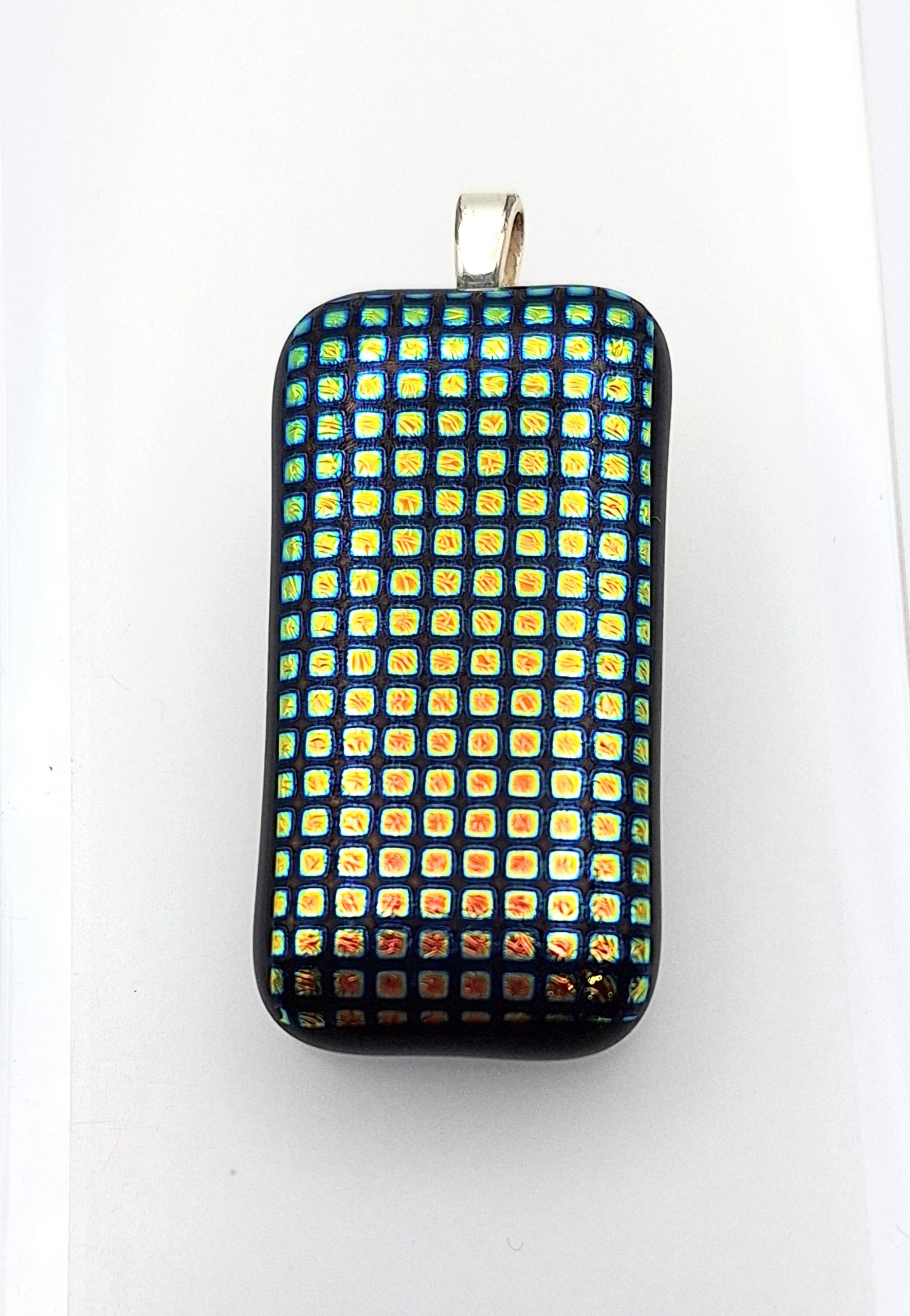 Fused dichroic glass pendant. Glass size. W 20 mm. H 40 mm.